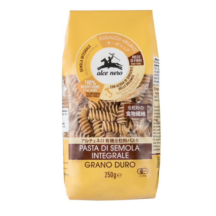 The Alce Nero organic whole durum wheat fusilli are made exclusively from organic whole durum wheat, which is made by milling the whole grain, without any refinement or added ingredients. The semolina dough is prepared using spring water from the Trentino Alps. The Alce Nero organic whole durum wh ...